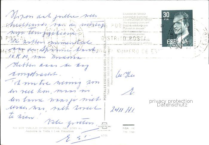 alte Postkarte Andorra La Vella Les Escaldes postalisch gelaufen Erhaltung siehe scans [NatalD47]