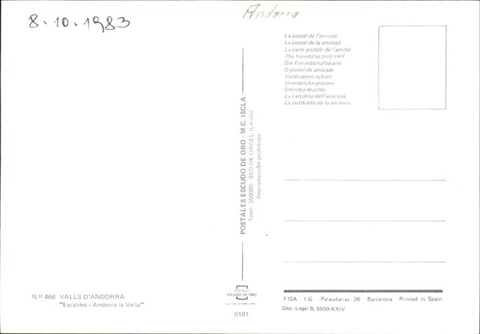 Andorra La Vella Panorama postalisch nicht gelaufen Erhaltung siehe scans