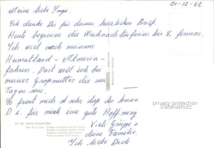Andorra La Vella Winterlandschaft postalisch nicht gelaufen Erhaltung siehe scans