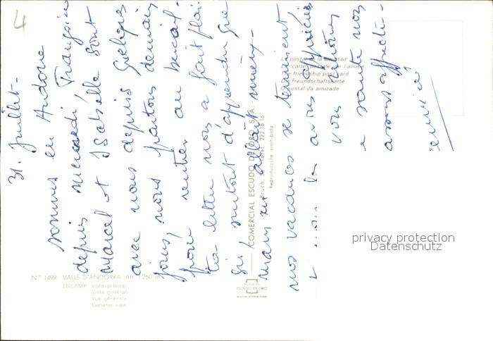 Andorra Valls D Andorra Encamp postalisch nicht gelaufen Erhaltung siehe scans