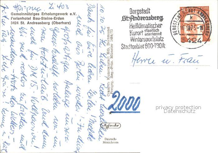 72557217 alte Postkarte Andreasberg Harz St Ferienhotel Bau Steine Erden Erholungswerk postalisch gelaufen Erhaltung siehe scans [KathaD79] KatCode: 11110003153010