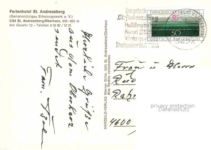 72726700 alte Postkarte Andreasberg Harz St Ferienhotel St Andreasberg Kegelbahn Restaurant postalisch gelaufen Erhaltung siehe scans [WerneD78] KatCode: 11110003153010