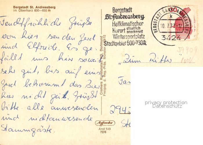 73109236 alte Postkarte Andreasberg Harz St Fliegeraufnahme postalisch gelaufen Erhaltung siehe scans [KathaD81] KatCode: 11110003153010