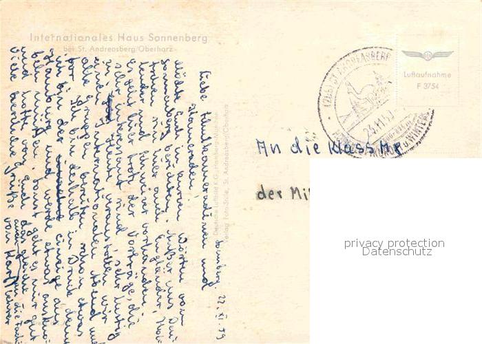 72796628 alte Postkarte Andreasberg Harz St Haus Sonnenberg Luftaufnahme postalisch gelaufen Erhaltung siehe scans [KathaD81] KatCode: 11110003153010