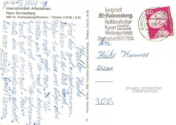72796850 alte Postkarte Andreasberg Harz St Haus Sonnenberg Winter postalisch gelaufen Erhaltung siehe scans [KathaD81] KatCode: 11110003153010