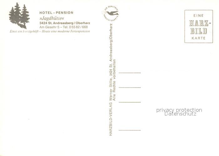 73086258 Andreasberg Harz St Hotel Pension Jagdhuette postalisch nicht gelaufen Erhaltung siehe scans [KathaD81] KatCode: 11110003153010