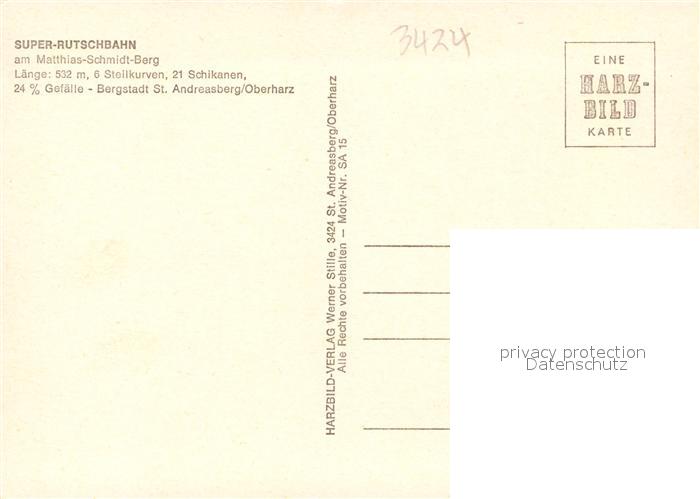 73165288 Andreasberg Harz St Matthias Schmidt Berg Sommerrodelbahn postalisch nicht gelaufen Erhaltung siehe scans [KathaD81] KatCode: 11110003153010