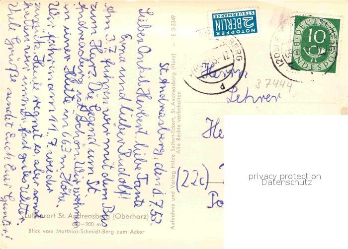 72895014 alte Postkarte Andreasberg Harz St Panorama postalisch gelaufen Erhaltung siehe scans [KathaD81] KatCode: 11110003153010