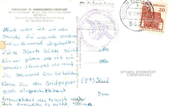 73317860 alte Postkarte Andreasberg Harz St Sessellift Matthias Schmidt Berg Sommerskipiste postalisch gelaufen Erhaltung siehe scans [KathaD81] KatCode: 11110003153010