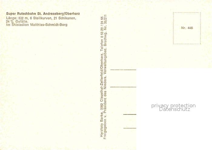 72795844 Andreasberg Harz St Super Rutschbahn Skistadion Matthias Schmidt Berg postalisch nicht gelaufen Erhaltung siehe scans [KathaD81] KatCode: 11110003153010
