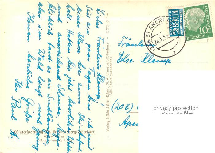73164040 alte Postkarte Andreasberg Harz St Winterlandschaft Rehberg postalisch gelaufen Erhaltung siehe scans [KathaD81] KatCode: 11110003153010