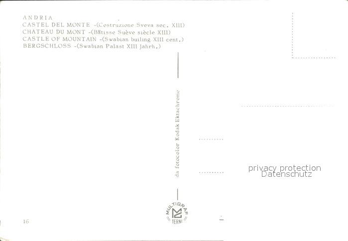 Andria Castel del Monte Bergschloss postalisch nicht gelaufen Erhaltung siehe scans