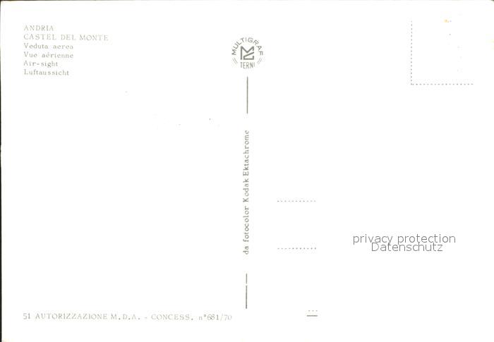 Andria Castel del Monte Bergschloss Fliegeraufnahme postalisch nicht gelaufen Erhaltung siehe scans