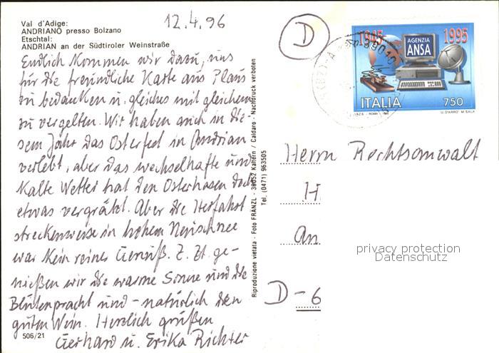 old postcard Andrian Panorama postalisch gelaufen Erhaltung siehe scans