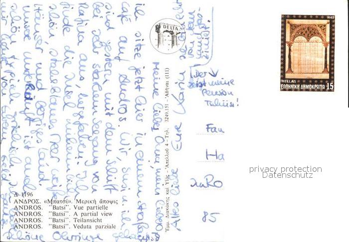 old postcard Andros Basti postalisch gelaufen Erhaltung siehe scans