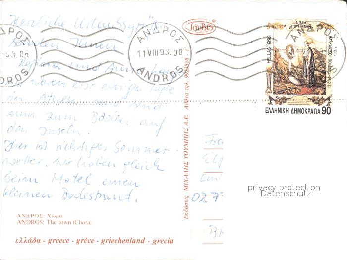 old postcard Andros Town Choral postalisch gelaufen Erhaltung siehe scans