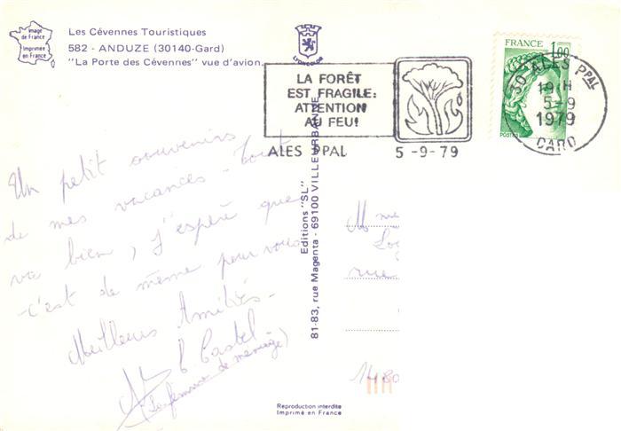 13944725 Anduze 30 Gard La Porte des Cevennes Vue aerienne postalisch gelaufen Erhaltung siehe scans [FriedD77] carte postale Frie Katcode 11170030130010