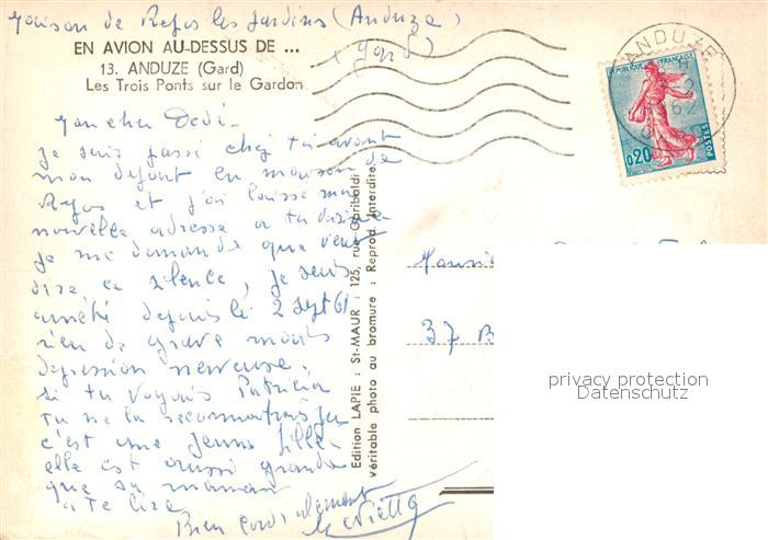 13602764 Anduze Fliegeraufnahme Les Trois Ponts sur le Gardon KatCode 11170030130010