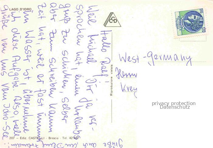 74013595 Anfo Lago d Idro Val Sabbia BRESCIA Lombardia IT Panorama Campingplatz postalisch nicht gelaufen Erhaltung siehe scans [FriedD77] Frie Katcode 11240