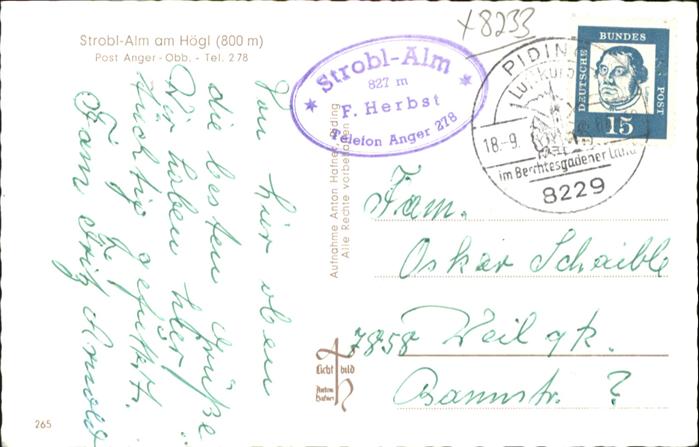 70941301 alte Postkarte Anger Bad Reichenhall Anger Strobl-Alm Hoegl postalisch gelaufen KatCode: 11110009172114