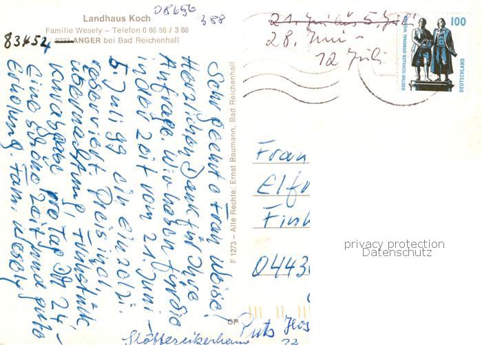 73837471 Anger Bad Reichenhall Landhaus Koch postalisch gelaufen Erhaltung siehe scans [FriedD77] alte Postkarte Frie Katcode 11110009172114