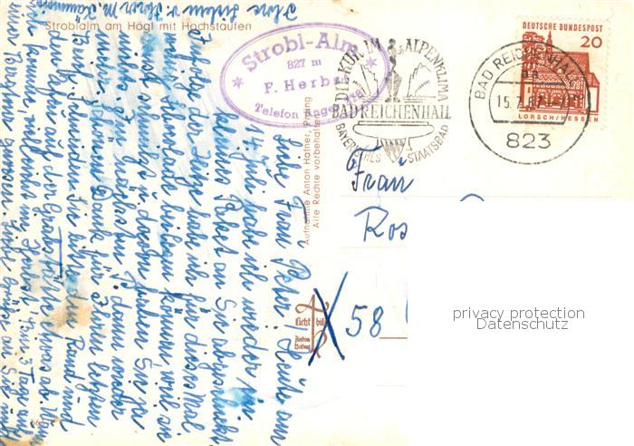 73779725 Anger Bad Reichenhall Stroblalm am Hoegl mit Hochstaufen postalisch gelaufen Erhaltung siehe scans [WerneD78] alte Postkarte Wern Katcode 11110009172114