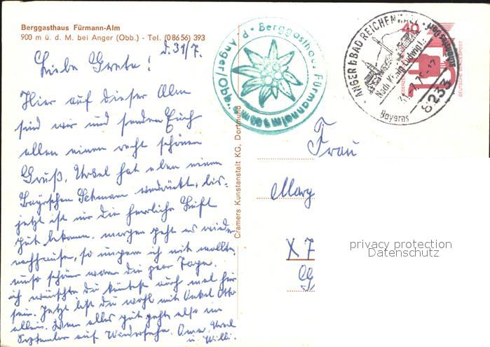 72563468 alte Postkarte Anger Chiemgau Berggasthaus Fuermann-Alm postalisch gelaufen Erhaltung siehe scans [LiesaD40] KatCode: 11110009172112