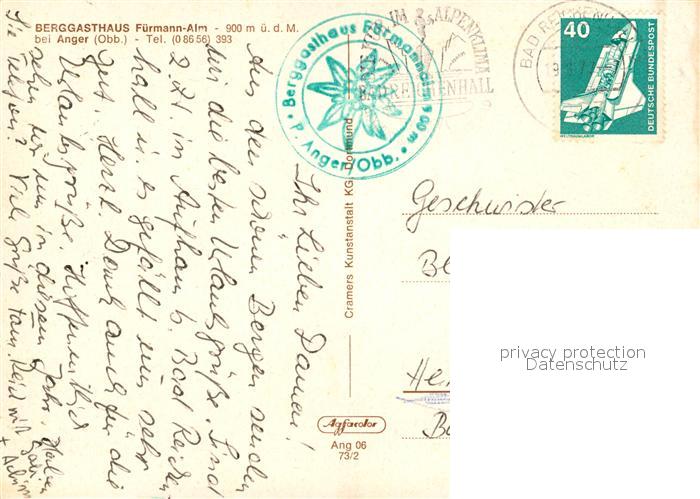 73103974 alte Postkarte Anger Chiemgau Berggasthaus Fuermann Alm postalisch gelaufen Erhaltung siehe scans [KathaD81] KatCode: 11110009172112