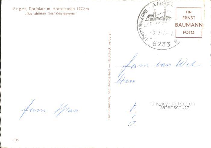 72273061 alte Postkarte Anger Chiemgau Dorfplatz Hochstaufen postalisch gelaufen Erhaltung siehe scans KatCode: 11110009172112