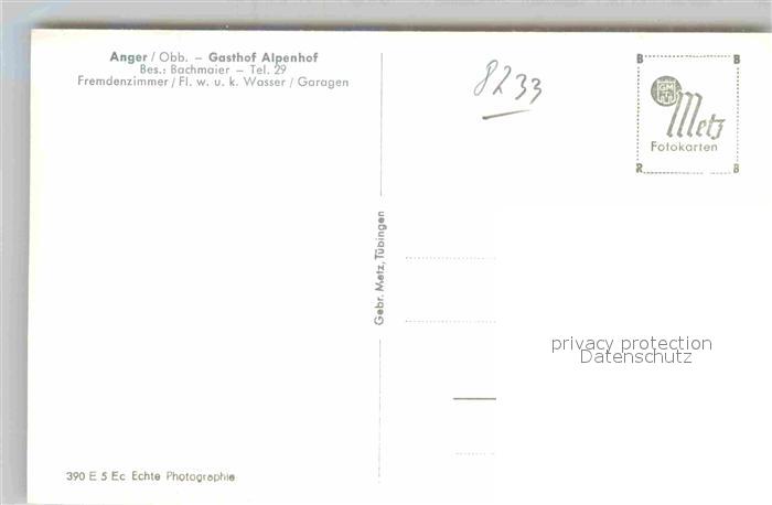 42649861 Anger Chiemgau Gasthof Alpenhof postalisch nicht gelaufen Erhaltung siehe scans [KathaD79] KatCode: 11110009172112