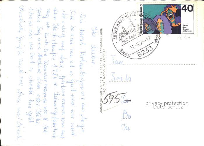 alte Postkarte Anger Chiemgau Ortsansicht mit Kirche Marktplatz Kloster Hoeglwoerth Berchtesgadener Alpen postalisch gelaufen Erhaltung siehe scans