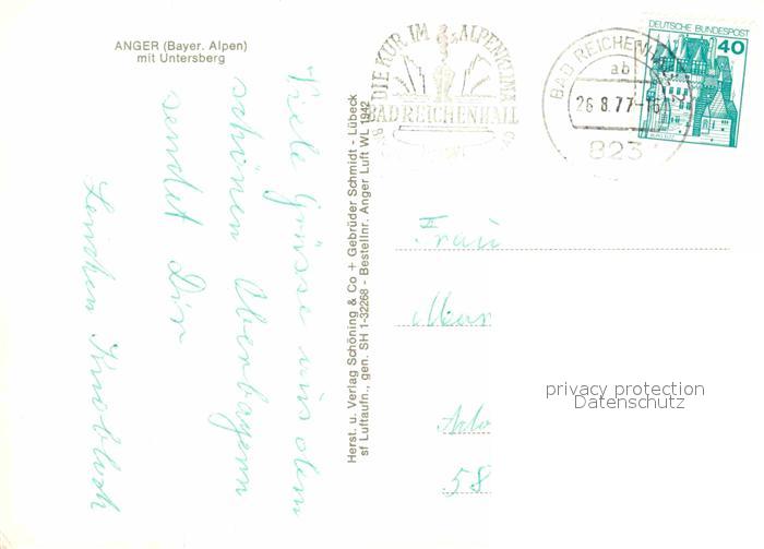 72825232 alte Postkarte Anger Chiemgau Panorama mit Untersberg Fliegeraufnahme postalisch gelaufen Erhaltung siehe scans [FriedD77] KatCode: 11110009172112