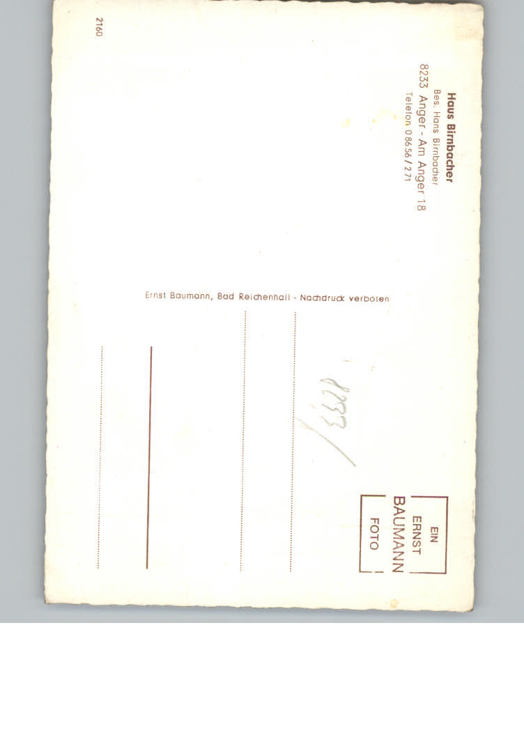 31157957 Anger Chiemgau Pension Birnbacher postalisch nicht gelaufen KatCode: 11110009172112