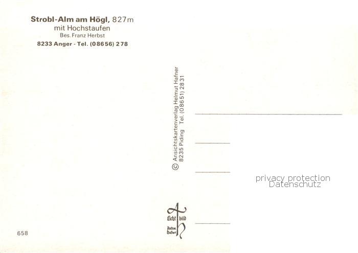 73801877 Anger Chiemgau Strobl Alm am Hoegl mit Hochstaufen postalisch nicht gelaufen Erhaltung siehe scans [WerneD78] KatCode: 11110009172112