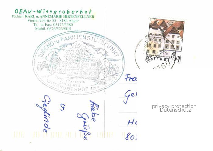72771346 alte Postkarte Anger Miesbach Wittgruberhof postalisch gelaufen Erhaltung siehe scans [AndreD76] KatCode: 11110009182125