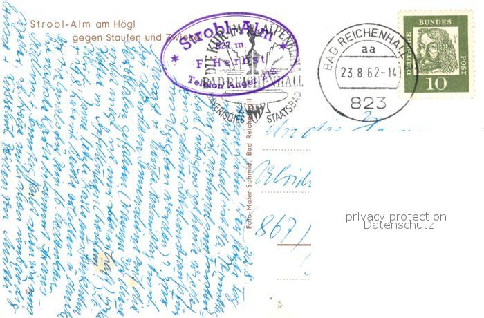 73292513 alte Postkarte Anger Stauffen Strobl Alm am Hoegl postalisch gelaufen Erhaltung siehe scans [WerneD78] KatCode: 11110009276148