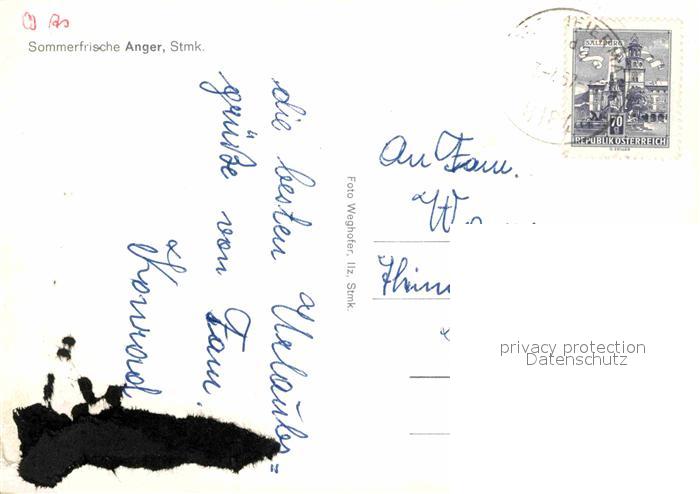 72687974 alte Postkarte Anger Steiermark Ortsansicht mit Kirche Sommerfrische postalisch gelaufen Erhaltung siehe scans [FriedD77] KatCode: 11390224061702