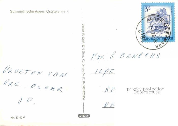 72664025 alte Postkarte Anger Steiermark Ortsansicht mit Kirche postalisch gelaufen Erhaltung siehe scans [FriedD77] KatCode: 11390224061702