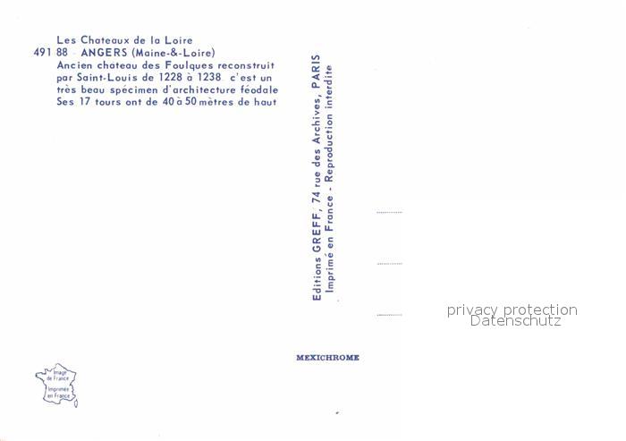 12664105 Angers Chateau des Foulques postalisch nicht gelaufen Erhaltung siehe scans [WerneD78] KatCode: 11170049149007