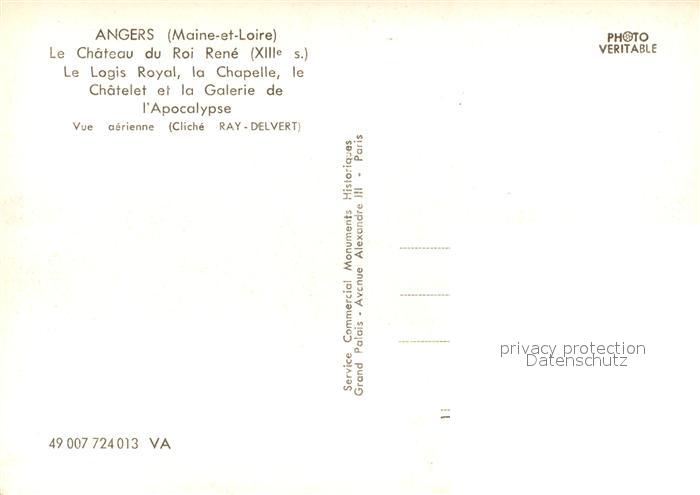 13154328 Angers Chateau du Roi René XIII siecle Logis Royal Chapelle Chatelet et Galerie de l’Apocalypse vue aerienne postalisch nicht gelaufen Erhaltung siehe scans [FriedD77] KatCode: 11170049149007