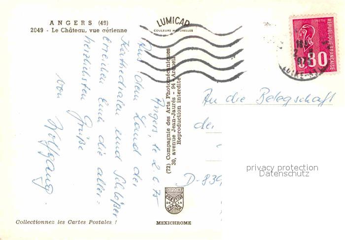 12785160 carte postale Angers Chateau vue aerienne postalisch gelaufen Erhaltung siehe scans [FriedD77] KatCode: 11170049149007