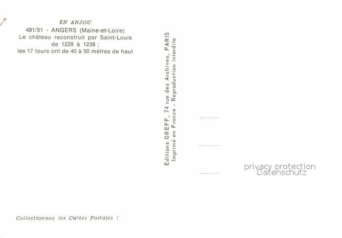 12787148 Angers Fliegeraufnahme Chàteau Stadtmauer postalisch nicht gelaufen Erhaltung siehe scans [AndreD76] KatCode: 11170049149007
