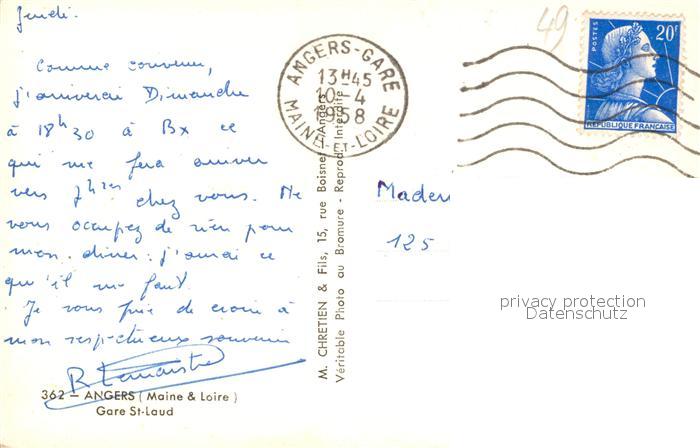 13571845 carte postale Angers Gare St Laud postalisch gelaufen Erhaltung siehe scans [WerneD78] KatCode: 11170049149007
