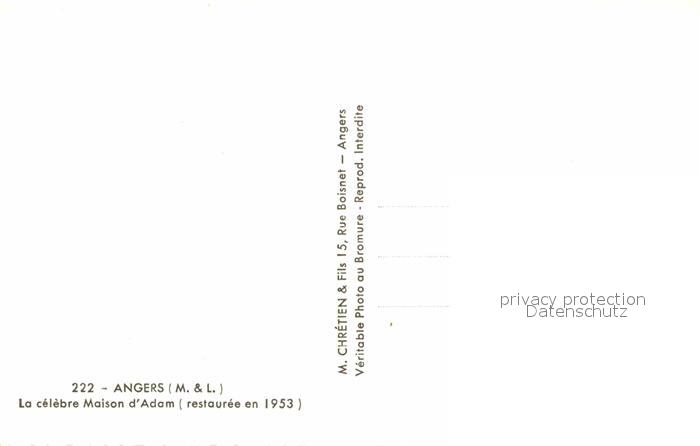 12705853 Angers La celebre Maison d Adam Fachwerkhaus postalisch nicht gelaufen Erhaltung siehe scans [FriedD77] KatCode: 11170049149007