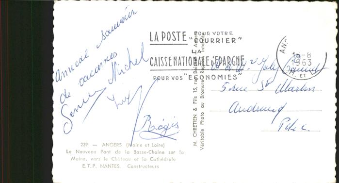 10951720 Angers Le Nouveau Pont de la Basse-Chaine sur la Maine Le Chateau la Cathedrale E.T.P. Nantes KatCode 11170049149007