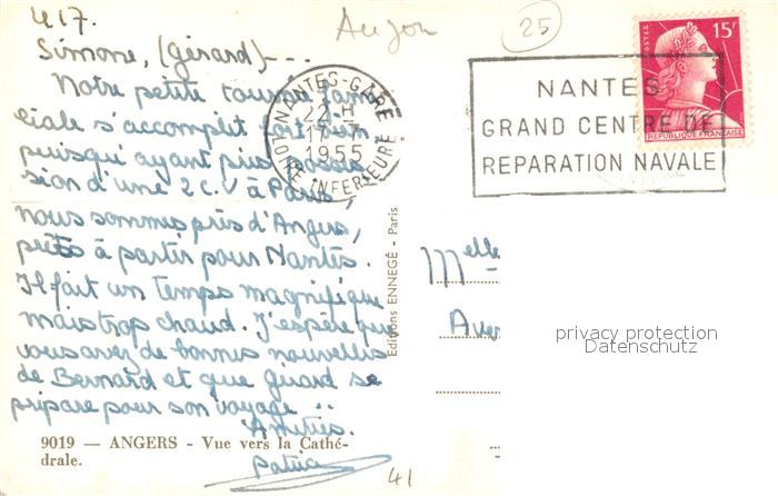 13505146 carte postale Angers Vue vers la Cathedrale postalisch gelaufen Erhaltung siehe scans [FriedD77] KatCode: 11170049149007