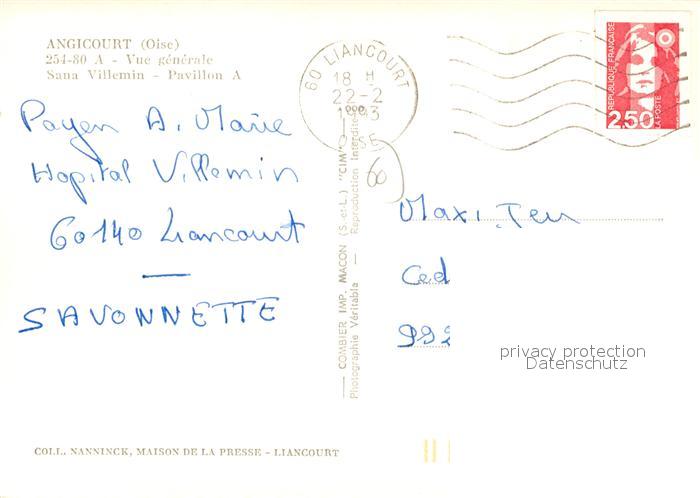 13280455 carte postale Angicourt Fliegeraufnahme Sana Villemin Pavillon A postalisch gelaufen Erhaltung siehe scans [LiesaD40] KatCode: 11170060260013