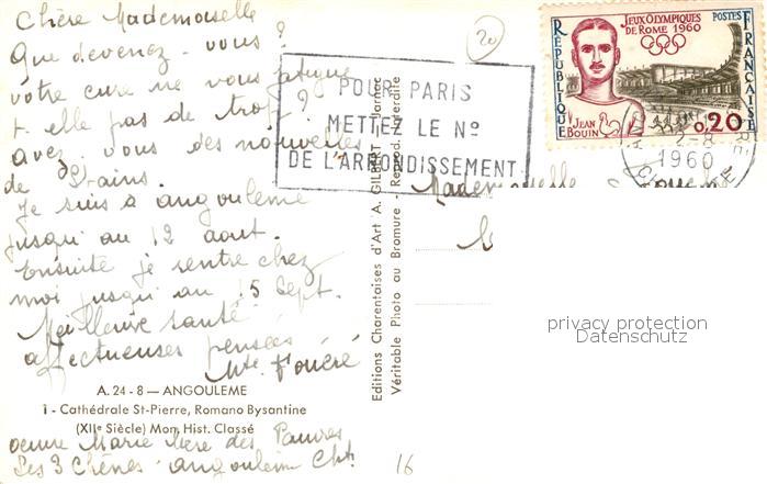 13494457 carte postale Angouleme Cathedrale Saint Pierre Romano Bysantine Monumuent Historique postalisch gelaufen Erhaltung siehe scans [FriedD77] KatCode: 11170016116015