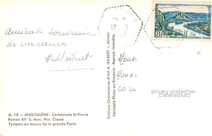 13581297 carte postale Angouleme Cathedrale St Pierre Tympan au dessus de la grande Porte postalisch gelaufen Erhaltung siehe scans [WerneD78] KatCode: 11170016116015