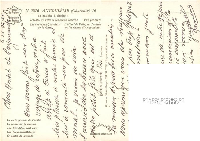 13663314 Angouleme Hotel de Ville Vue generale Le nouveaux Quartiers de la Gare Hotel de Ville ses Jardins postalisch nicht gelaufen Erhaltung siehe scans [WerneD78] Wern Katcode 11170016116015